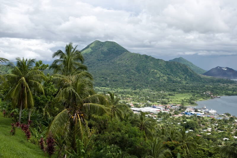Rabaul se trouve à l'extrémité orientale de l'île de Nouvelle-Bretagne.