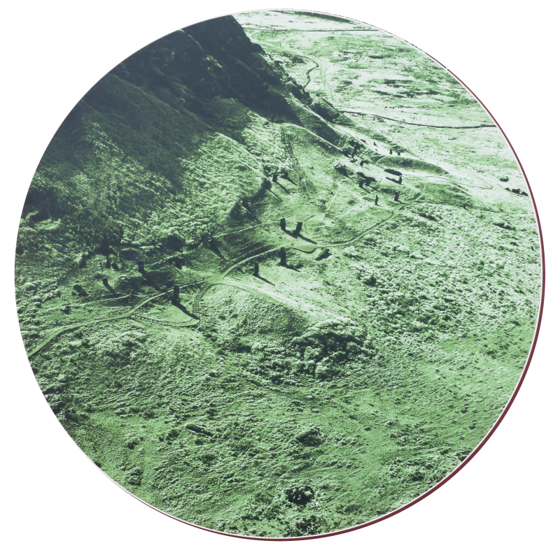 Le site de Rano Raraku , à l'Est ( 4h sur la carte) : le volcan qui servait de carrière aux Moai. Ce lieu regroupe près de 400 Moai à différents stades de fabrication, en attente d’être terminés ou transportés. Les glissements de terrain qui ont eut lieu le long des pentes du volcan en ont fait chuter quelques-unes. Dans la carrière repose également le Géant, plus grand Moai jamais sculpté mais inachevé : 21,60m pour 200 tonnes.