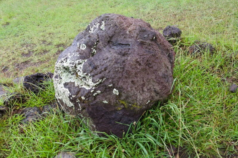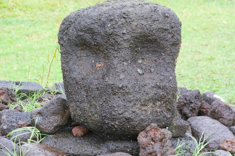 Ébauches de visages sur ces pierres volcaniques, plage de Anakena.