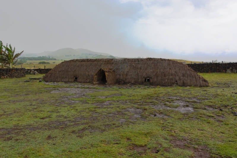 À Ahu Te Peu, il y a les ruines de ce qui était autrefois un grand village qui s’étendait de l’actuelle route côtière jusqu’au bord de la falaise. Sur cette zone d’environ deux cents mètres de large, il y a plusieurs constructions typiques qui faisaient partie de la plupart des anciens établissements insulaires.