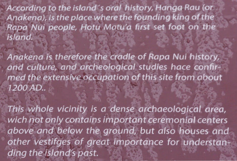 Bras et mains sont gravés en bas de chaque Moaï.