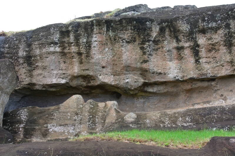 La roche de Rano Raraku est idéale à travailler car constituée de cendres volcaniques compactées . Logique donc que la plupart des mégalithes aient été façonnés dans cette carrière, située à l’Est de l’île.