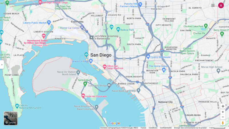 Dans la Mission Bay , au dessus du fleuve SD qui prend sa source dans les montagnes Cuyamaca